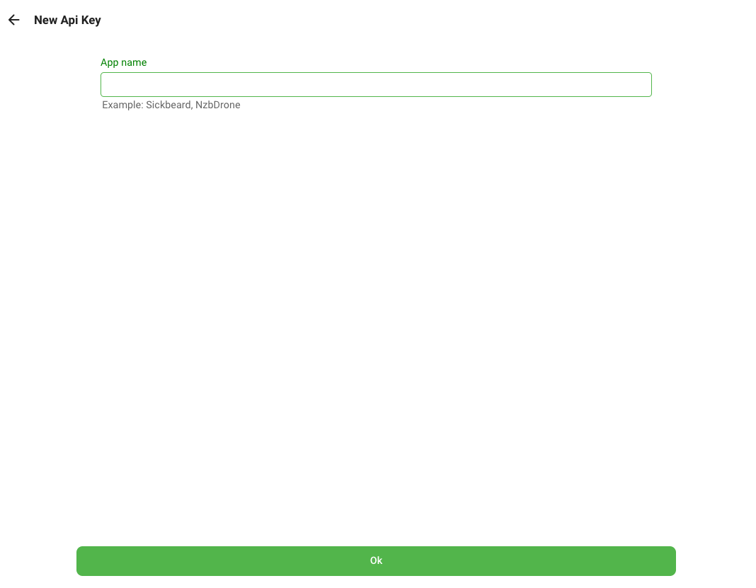 4. Fill in an App name (e.g. Ombi) and click OK.